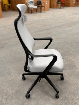 The seat is made of padded fabric, providing comfort and durability even during long working days, thanks to the high-quality materials used in its construction. This model includes fixed armrests with a discreet and futuristic design.